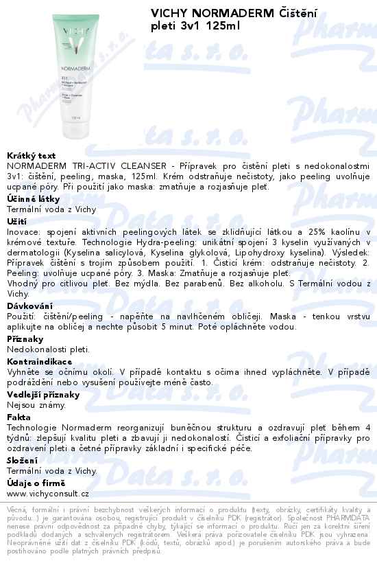 VICHY NORMADERM Čištění pleti 3v1 125ml