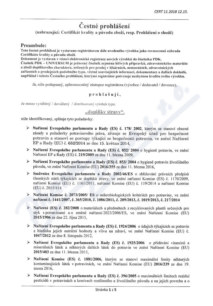 5 strany čestného prohlášení: strana 1, strana 2, strana 3, strana 4, strana 5,