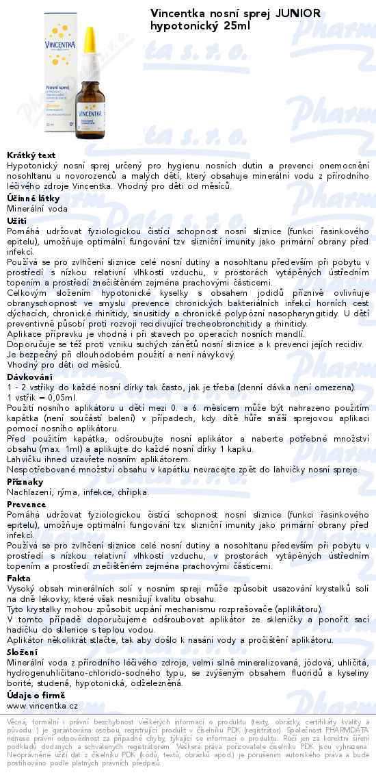 Vincentka nosní sprej JUNIOR hypotonický 25ml
