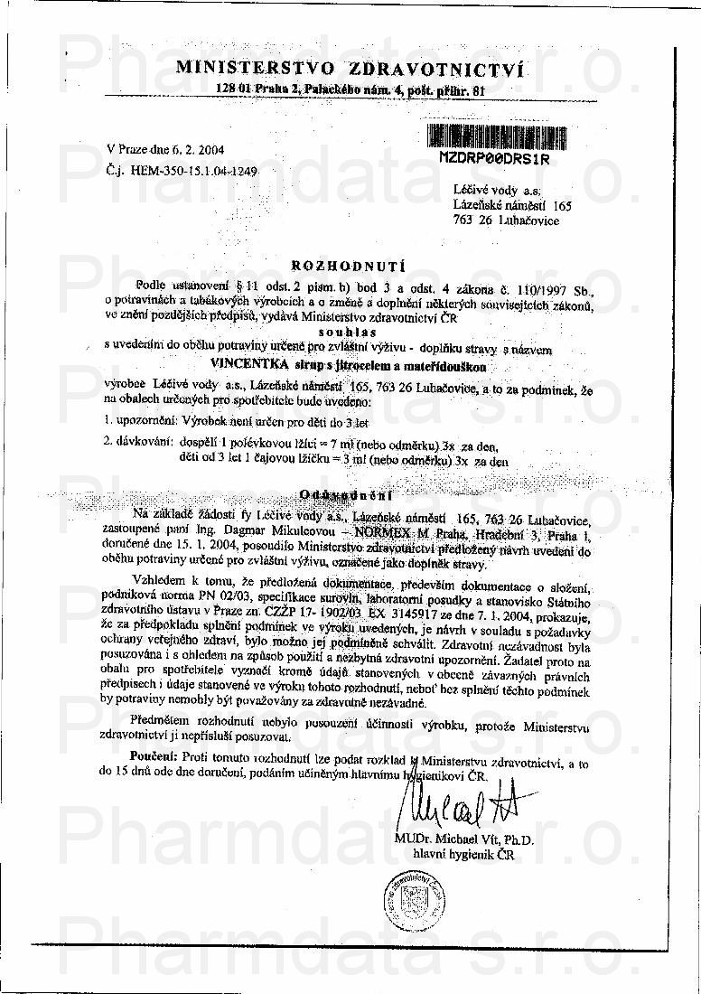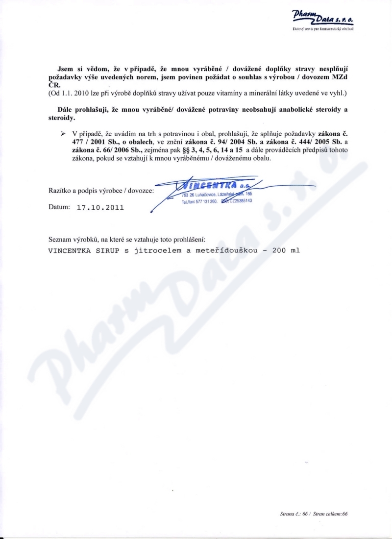 Výrobce: VINCENTKA,A.S.