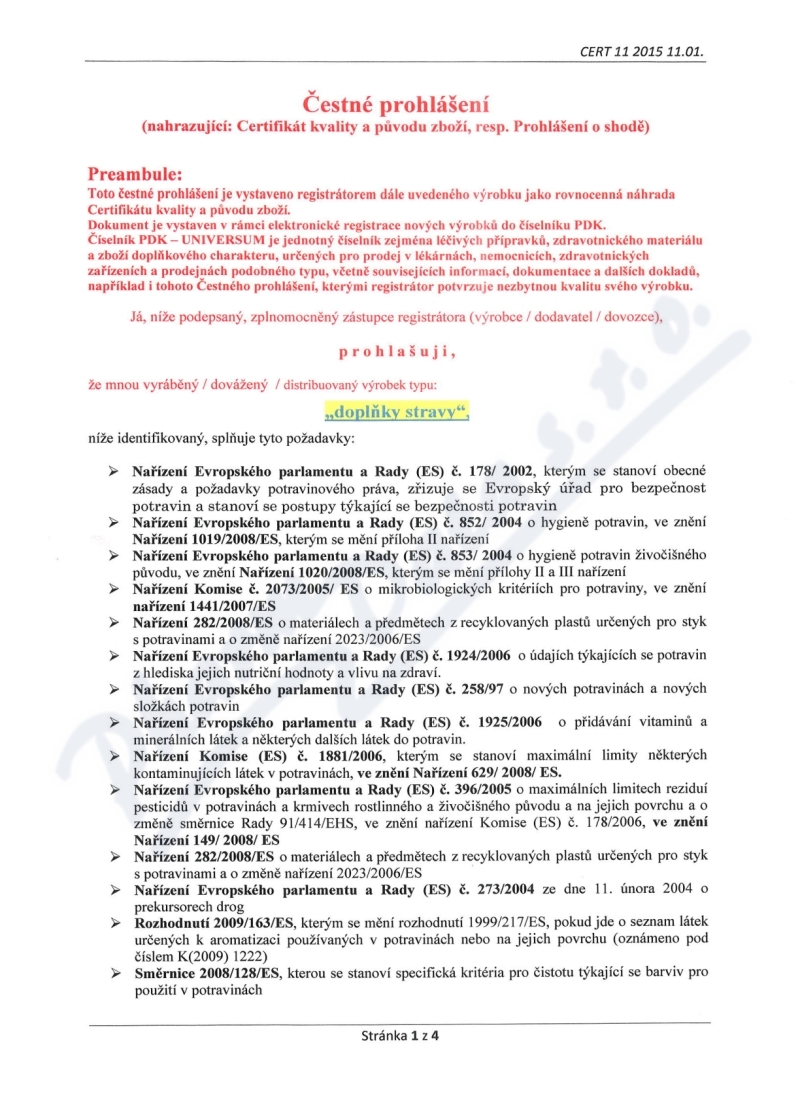 4 strany čestného prohlášení: strana 1, strana 2, strana 3, strana 4,
