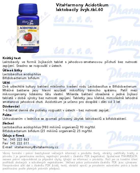 VitaHarmony Acidotikum laktobacily žvýk.tbl.60