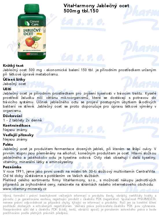 VitaHarmony Jablečný ocet 500mg tbl.150