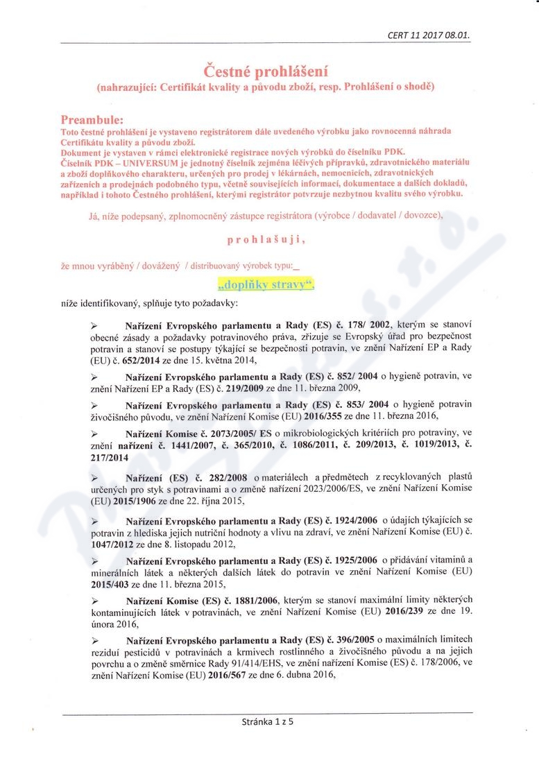 5 strany čestného prohlášení: strana 1, strana 2, strana 3, strana 4, strana 5,