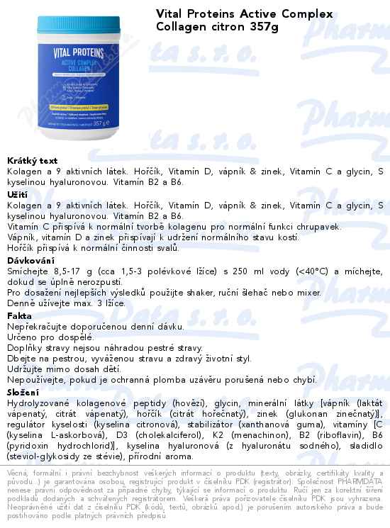 Vital Proteins Active Complex Collagen citron 357g