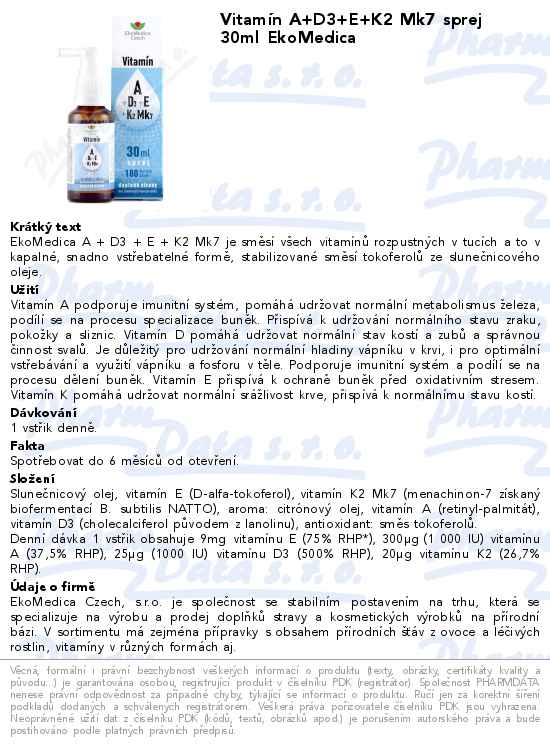 Vitamín A+D3+E+K2 Mk7 sprej 30ml EkoMedica