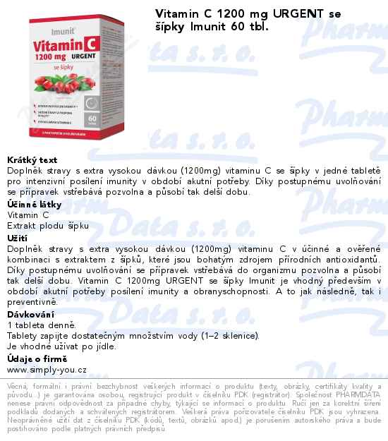 Vitamin C 1200 mg URGENT se šípky Imunit 60 tbl.