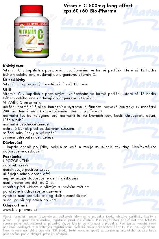 Vitamín C 500mg long effect cps.60+60 Bio-Pharma