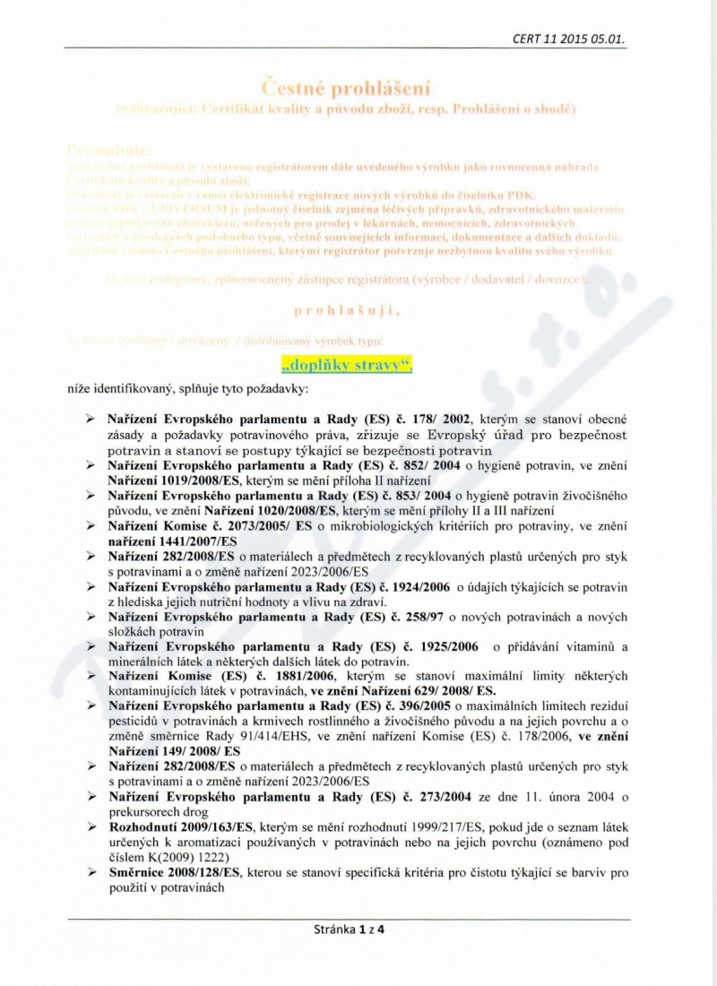 4 strany čestného prohlášení: strana 1, strana 2, strana 3, strana 4,