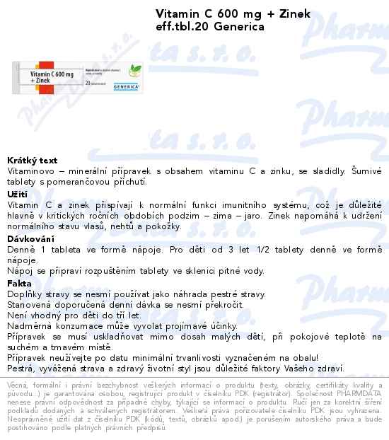 Vitamin C 600 mg + Zinek eff.tbl.20 Generica