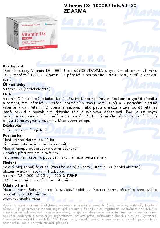 Vitamin D3 1000IU tob.60+30 ZDARMA