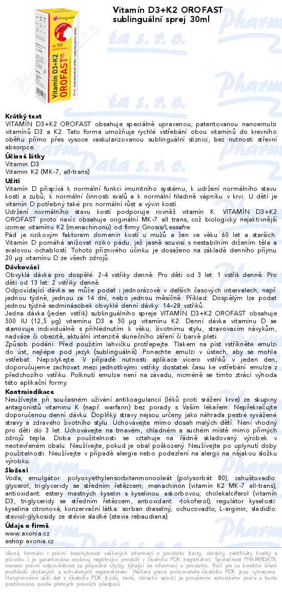 Vitamín D3+K2 OROFAST sublinguální sprej 30ml