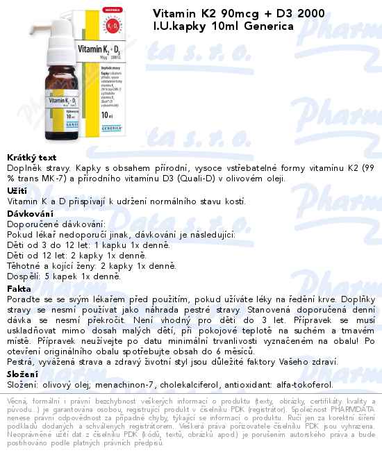 Vitamin K2 90mcg + D3 2000 I.U.kapky 10ml Generica