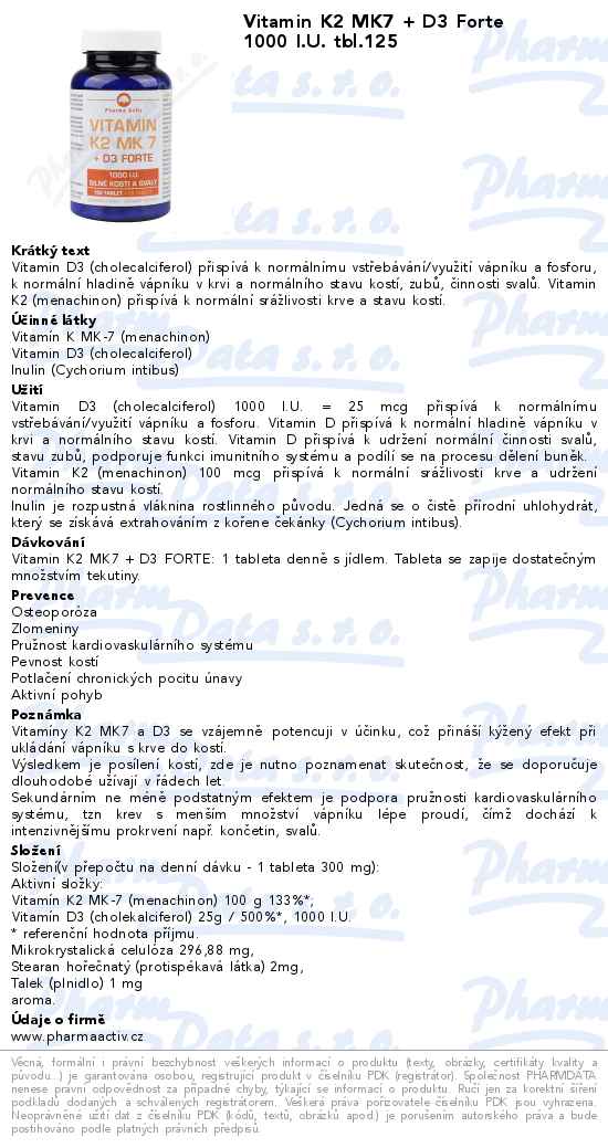 Vitamin K2 MK7 + D3 Forte 1000 I.U. tbl.125