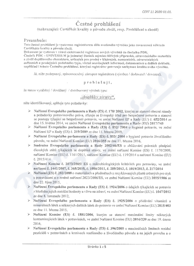 5 strany čestného prohlášení: strana 1, strana 2, strana 3, strana 4, strana 5,