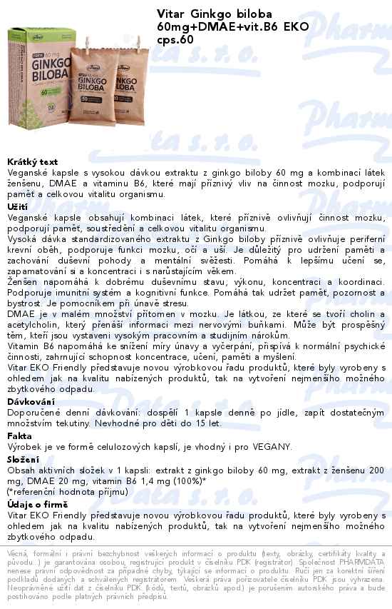 Vitar Ginkgo biloba 60mg+DMAE+vit.B6 EKO cps.60