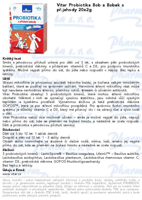 Vitar Probiotika Bob a Bobek s př.jahody 20x2g