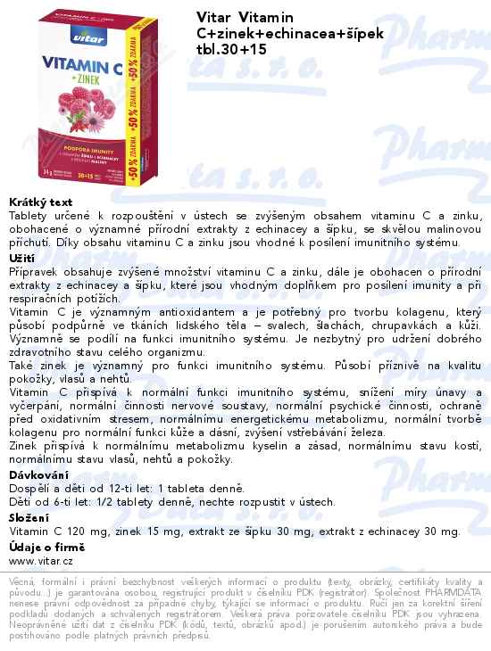 Vitar Vitamin C+zinek+echinacea+šípek tbl.30+15
