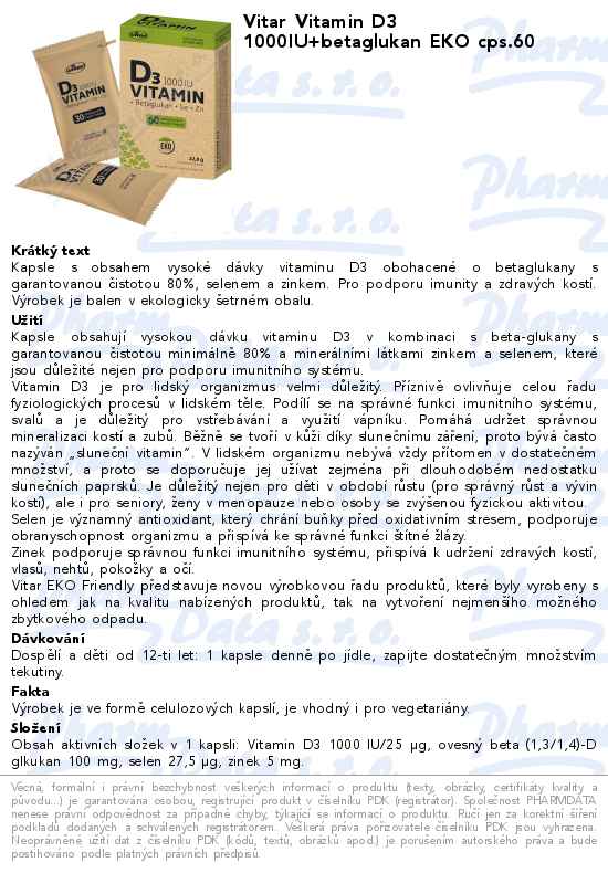 Vitar Vitamin D3 1000IU+betaglukan EKO cps.60
