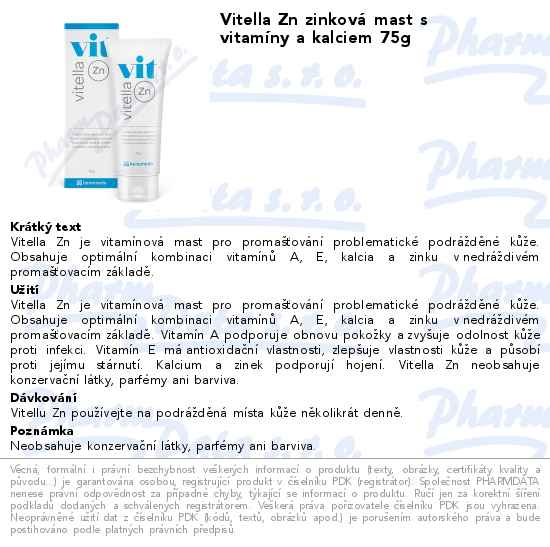 Vitella Zn zinková mast s vitamíny a kalciem 75g