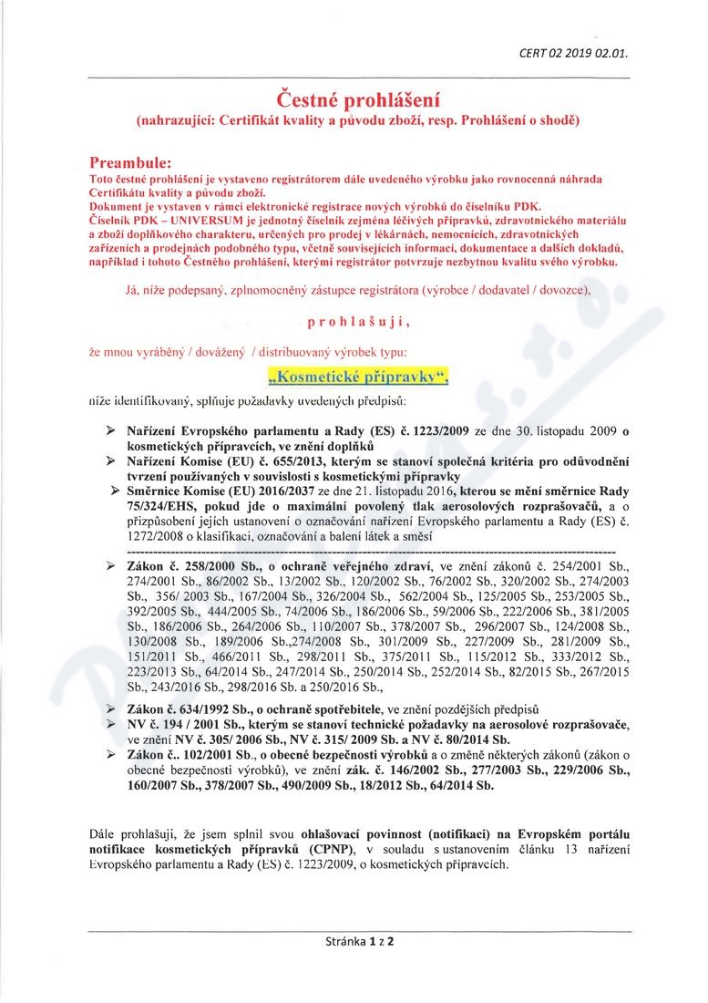 2 strany čestného prohlášení: strana 1, strana 2,