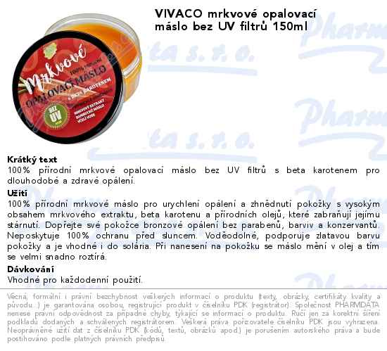 VIVACO mrkvové opalovací máslo bez UV filtrů 150ml