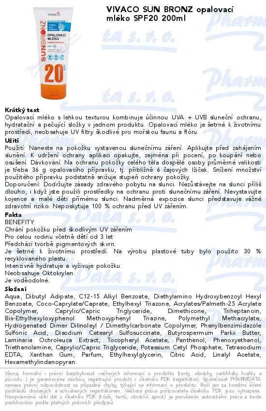VIVACO SUN BRONZ opalovací mléko SPF20 200ml