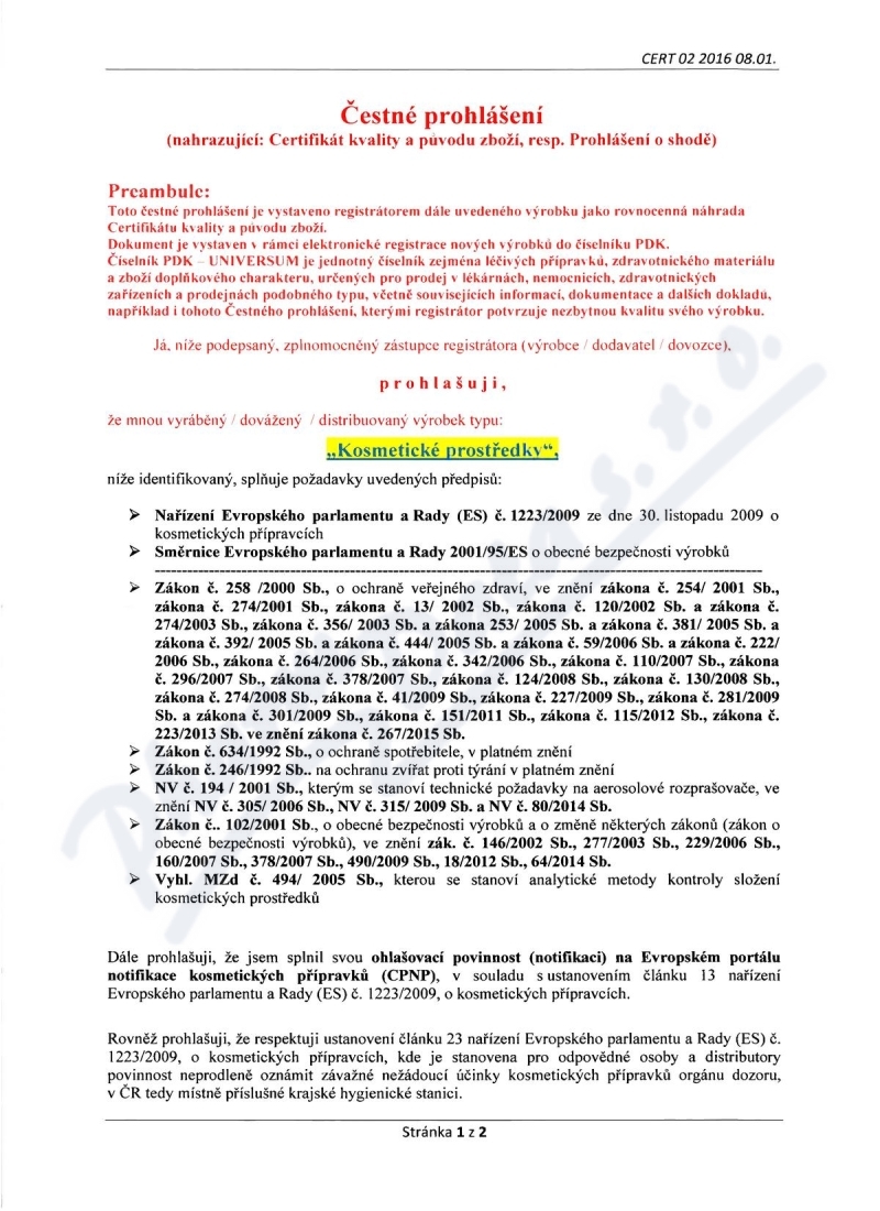 2 strany čestného prohlášení: strana 1, strana 2,