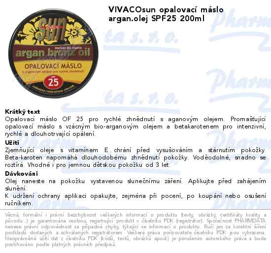 VIVACOsun opalovací máslo argan.olej SPF25 200ml