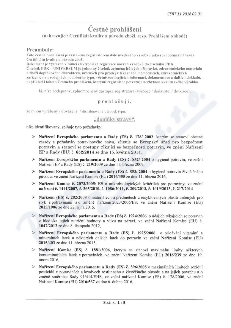 5 strany čestného prohlášení: strana 1, strana 2, strana 3, strana 4, strana 5,