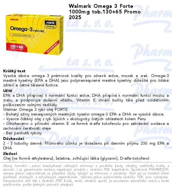 Walmark Omega 3 Forte 1000mg tob.130+65 Promo 2025
