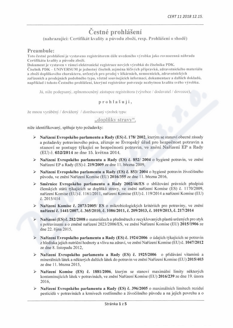 5 strany čestného prohlášení: strana 1, strana 2, strana 3, strana 4, strana 5,
