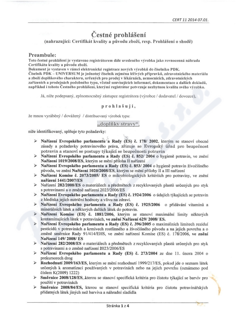 4 strany čestného prohlášení: strana 1, strana 2, strana 3, strana 4,