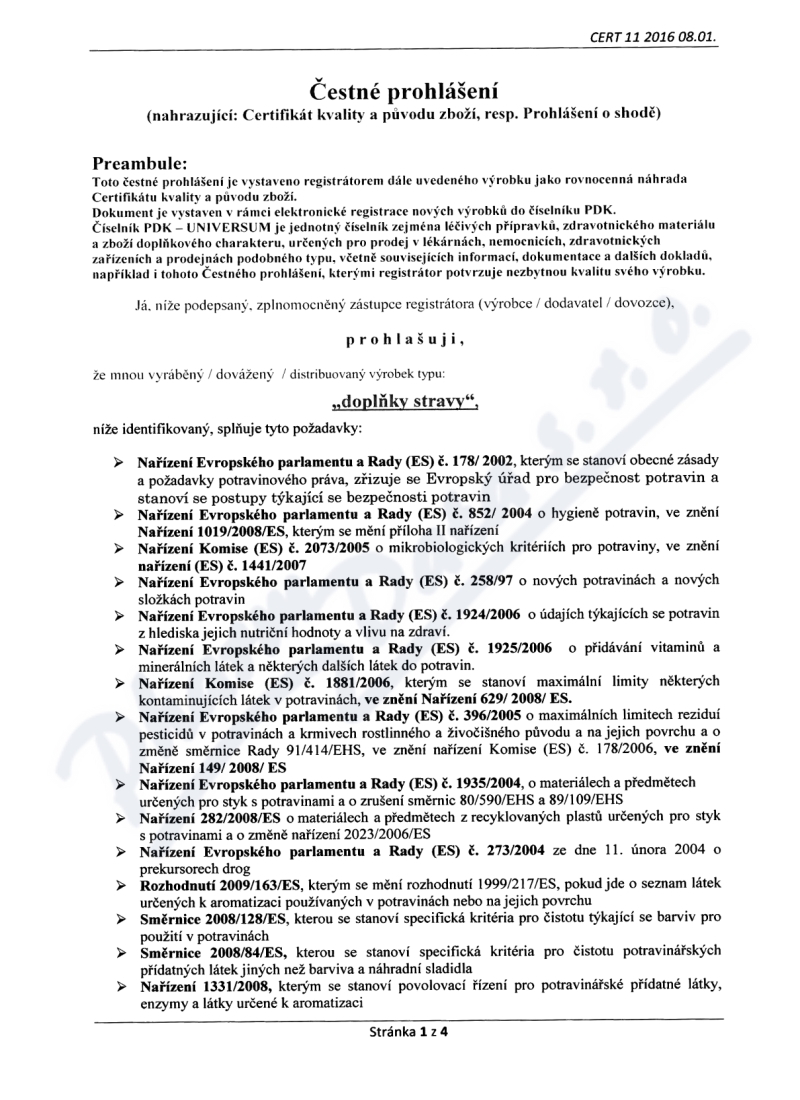 4 strany čestného prohlášení: strana 1, strana 2, strana 3, strana 4,