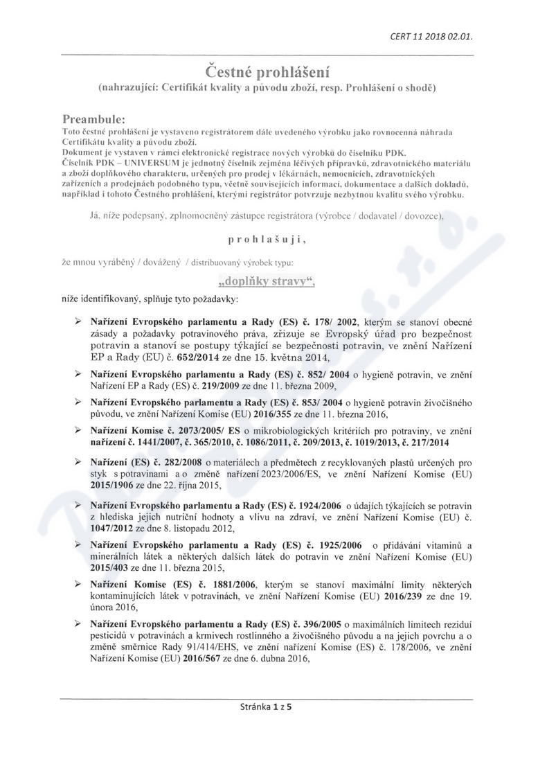 5 strany čestného prohlášení: strana 1, strana 2, strana 3, strana 4, strana 5,