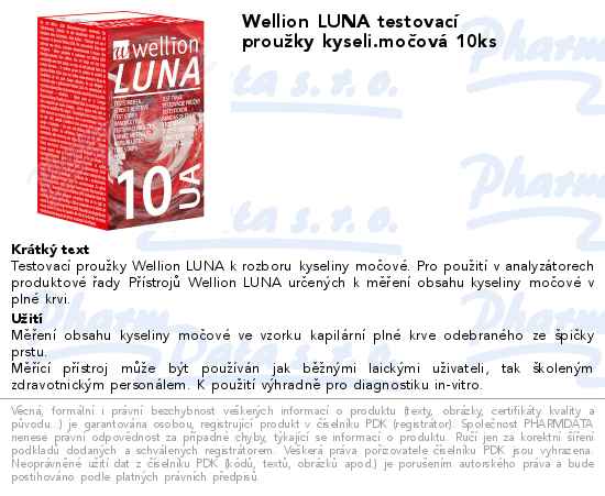 Wellion LUNA testovací proužky kyseli.močová 10ks