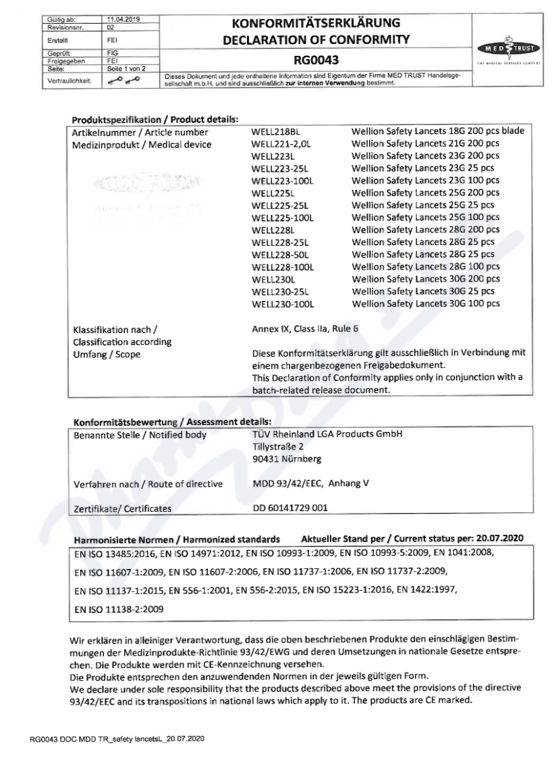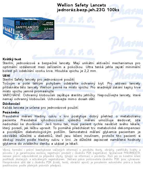 Wellion Safety Lancets jednoráz.bezp.jeh.23G 100ks