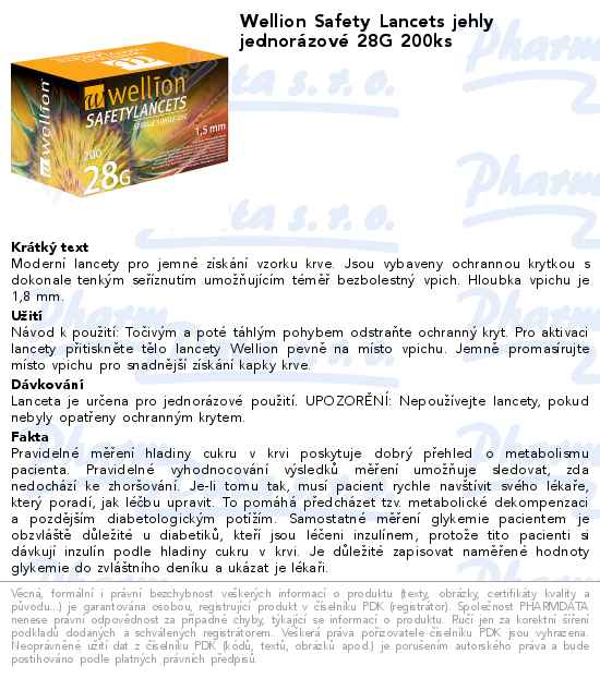 Wellion Safety Lancets jehly jednorázové 28G 200ks