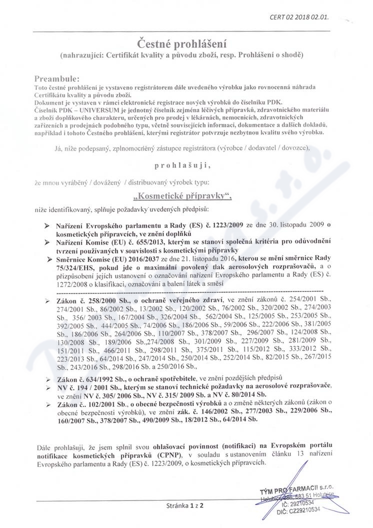 2 strany čestného prohlášení: strana 1, strana 2,