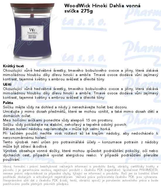 WoodWick Hinoki Dahlia vonná svíčka 275g