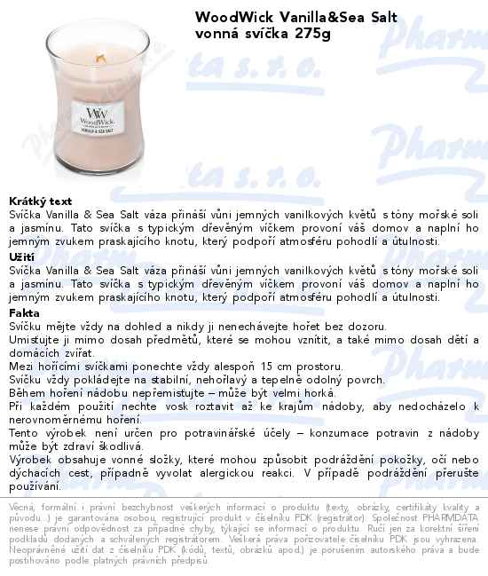 WoodWick Vanilla&Sea Salt vonná svíčka 275g