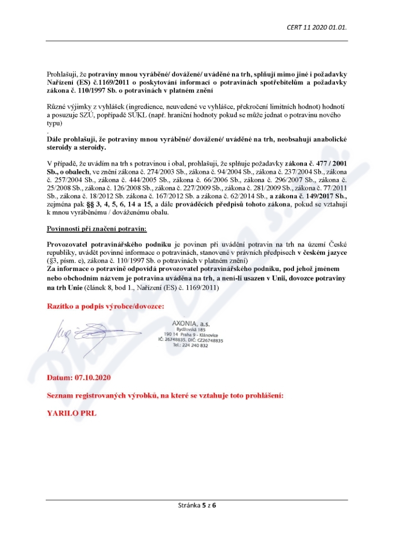 Výrobce: AXONIA A.S., PRAHA