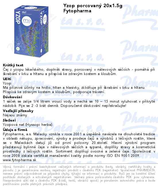 Výrobce: FYTOPHARMA A.S.