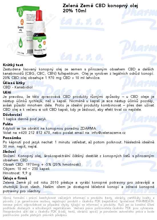 Zelená Země CBD konopný olej 20% 10ml