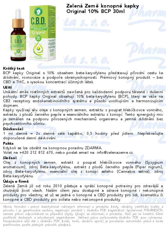 Zelená Země konopné kapky Original 10% BCP 30ml