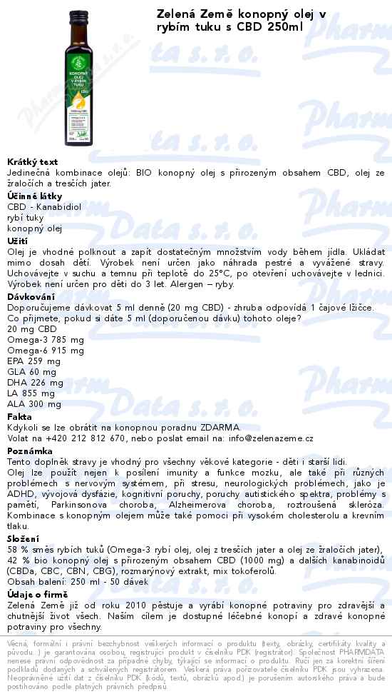 Zelená Země konopný olej v rybím tuku s CBD 250ml