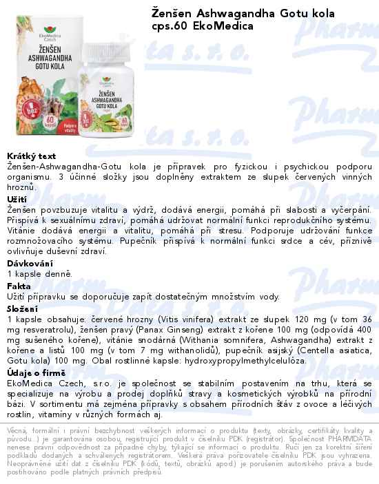 Ženšen Ashwagandha Gotu kola cps.60 EkoMedica