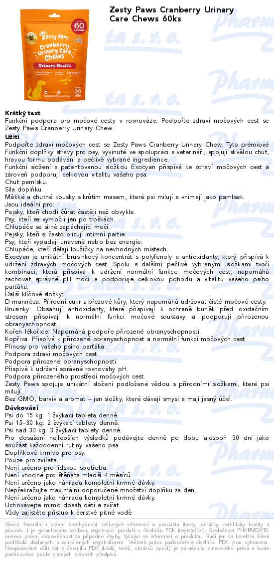 Zesty Paws Cranberry Urinary Care Chews 60ks