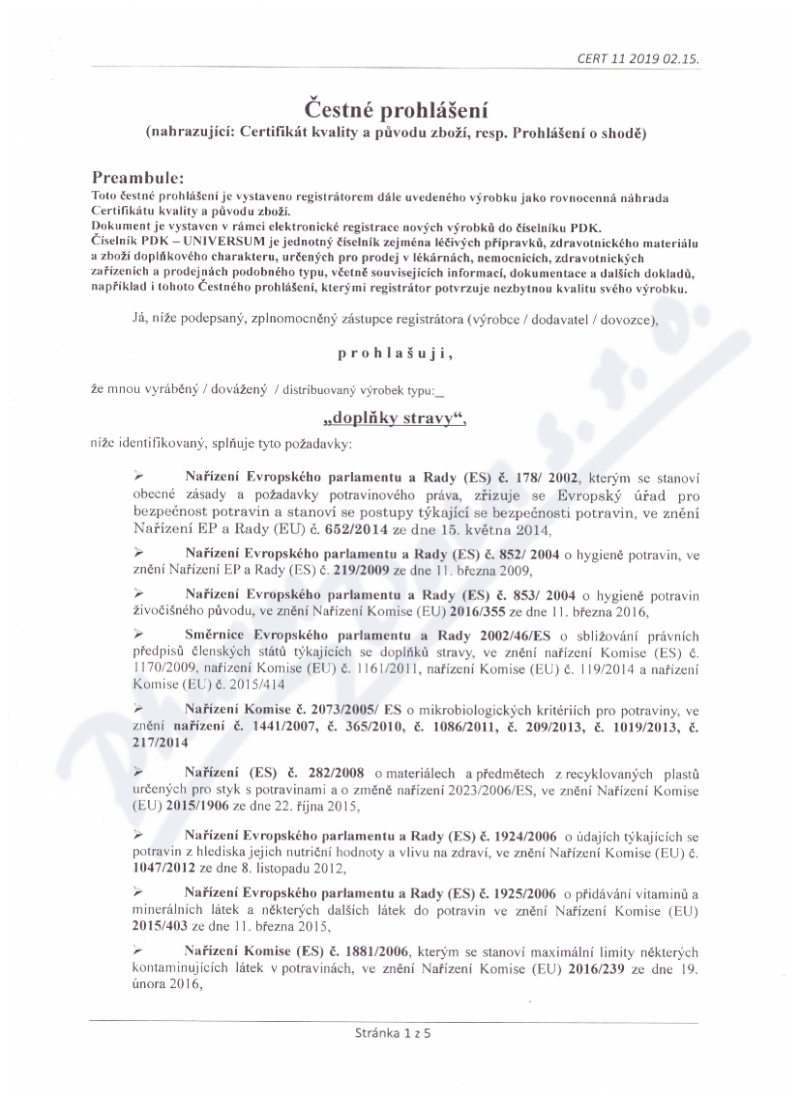 5 strany čestného prohlášení: strana 1, strana 2, strana 3, strana 4, strana 5,