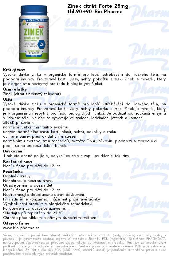 Zinek citrát Forte 25mg tbl.90+90 Bio-Pharma